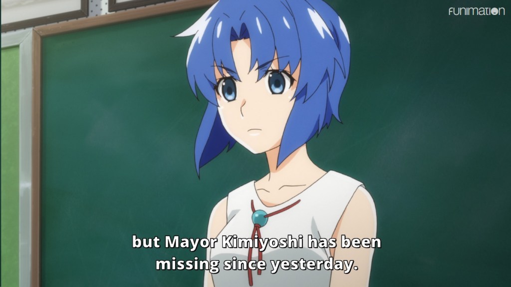 This arc seemed to be running on an accelerated timeline as compared to Watanagashi-hen, with Kimiyoshi’s disappearance happening on the night of the festival rather than shortly afterwards. This isn’t necessarily a huge deal but it does change the windows where certain characters could have acted and at least points in the direction of Mion being involved in some way. We also got a bit of an expansion on Tomitake and Takano’s disappearance last arc, with them having been witnessed fleeing from the festival grounds in apparent terror on the night of Watanagashi. This sort of works against my theory that Takano might have intentionally vanished for theatrical reasons last time but beyond that I’m not entirely sure what to make of it.