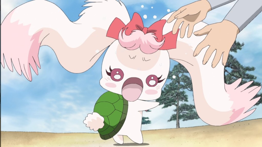 So obviously GoGo taking this one step further and letting her become a cure in everything but name (Yes Precure 6 is clearly far too unwieldy a title). Much like Michiru and Kaoru before her she doesn’t get the actual title but gets to join the team for all practical purposes. She also gets a human form which opens up some more opportunities to interact with the rest of the cast so that’s fun.