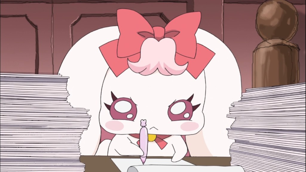 The rest of the series (which I’m still not quite finished with so it’s always entirely possible her arc ultimately goes nowhere but I’m willing to believe it doesn’t) makes good use of her character by building on her rivalry with Nozomi in new ways. Before she had to accept that she wasn’t as powerful as the Precure and stay in a support role, so now that she can stand on even ground with them she finds herself acting alone, because she can protect Coco and Nuts now and doesn’t need to hide behind the others. She’s not even a Precure she’s something special and unique, something the villains actively use against her as she tries to prove herself.